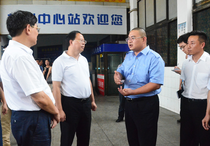 下午4時許,張副省長一行輕車簡從來到株洲汽車中心站,一下車,張副省長與賀書記就熱情地與大家打招呼,逐一握手;接著,他們先后查看了安全檢測儀、候車室、發(fā)車區(qū),對車站工作人員有條不紊、井然有序的工作表示贊許。之后,他們來到GPS監(jiān)控中心,在詳細詢問和仔細察看了行車實時動態(tài)監(jiān)控與相關(guān)記錄后,張副省長諄諄叮囑在場的集團公司和株洲客運分公司領(lǐng)導:“一定要時刻把安全放在重中之重的位置上,把牢駕駛員審驗和車輛技術(shù)狀況以及三品檢查關(guān),確保旅客人身財產(chǎn)安全!”并作出重要指示,要求在確保安全的前提下,各級各部門要創(chuàng)造良好環(huán)境,按照車進站、人歸點,零距離換乘的原則,維護好車站的正常生產(chǎn)秩序和員工隊伍穩(wěn)定,促進企業(yè)的良性發(fā)展。同時強調(diào):車站是服務(wù)群眾的交通基礎(chǔ)設(shè)施,汽車站不宜外遷,以方便旅客零距離換乘。副省長的一席話,就像一股溫馨的暖流,深深地沁入每一位企業(yè)干部員工的心田,這既是一份關(guān)心與關(guān)懷,更是一份責任和使命!